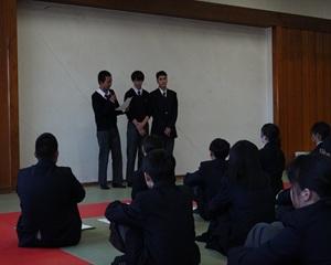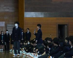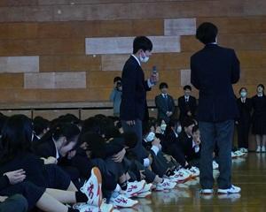 続いて、3年生と在校生が語り合う時間を設け、 学校生活の思い出や受験への取り組み、 後輩へのメッセージなどについて話し合いました。 3年生の言葉に在校生が真剣に耳を傾ける姿が印象的でした。