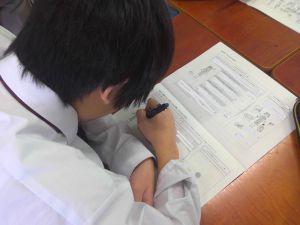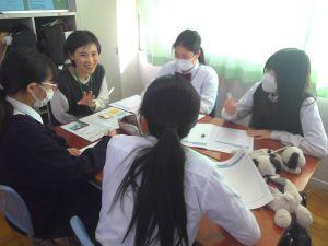 1年生から3年生までの縦割りグループで校内の様々なブースを回り、ALTや英語科教員と一緒に英語を使った活動に取り組みました。先輩と後輩が協力しながら楽しそうに英語で交流する姿が見られました。