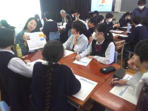 生徒たちは8グループに分かれて、多様な経歴をお持ちの社会人の方々に色々な質問をし、様々な視点からのお話を伺うことができました。フリーランス・広告・芸能・国際関係など、普段あまり関わることがない職業についてのお話を聞かせて頂き、生徒達にはとても刺激になった様子です。