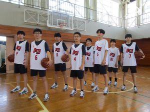 附属中男子バスケットボール部は、3年生3名、2年生5名の8名で活動しています。高校生と一緒に練習を行い、教えてもらったり参考にしたりして技術の向上に努めています。中学校からバスケットボールを始めた部員がほとんどですが、先輩方のサポートで着実に上達しています。小学生のみなさん、私たちと一緒にバスケットボールを通じて楽しい学校生活を送りましょう。